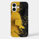 This phone case features a striking contrast of vivid yellow and matte black in a three-dimensional hexagonal/honeycomb pattern. The design is disrupted by a grunge, distressed black splash that runs across the blocks, giving it a cool, industrial, and street-art-inspired look. Perfect for those who love bold colors, geometric patterns, and urban aesthetics.