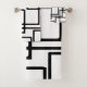 Ineinandergreifender schwarze Quadrat-künstlerischer Entwurf ist ein ursprünglicher künstlerischer Vektor der Quadrate in einer mondrian Art. Ein einzigartiger minimalistic Entwurf und eine Zusammensetzung in Schwarzweiss. Vervollkommnen Sie für die, die abstrakte Kunst umfassen oder die, die ein Neo-plasticism Thema im Kleid und im Dekor haben.