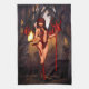 "Höllentempel" Eine verführerische Dämonin steht in einem schattigen Wald, ihre feurigen Flügel breiten sich aus, während sie eine glühende Flamme und einen grausamen Dreier hat. Sie ist in dunkelrot gehalten und strahlt Power, Gefahr und dunkle Verzauberung aus.