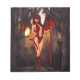 "Höllentempel" Eine verführerische Dämonin steht in einem schattigen Wald, ihre feurigen Flügel breiten sich aus, während sie eine glühende Flamme und einen grausamen Dreier hat. Sie ist in dunkelrot gehalten und strahlt Power, Gefahr und dunkle Verzauberung aus.