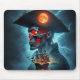 Dieses auffallende Mousepad-Design zeichnet sich durch einen spektralen Pirat mit einem feurigen, skelettalen Blick aus, dessen Augen ominös rot leuchten. Er trägt einen verwitterten Tricornhut unter einem blutroten Mond, der den stürmischen, blitzgestreuten Himmel beherrscht. Unter ihm segelt ein geistreiches Schiff durch dunkles, vorstehendes Wasser, seine Segel, beleuchtet von einem anderen, orangefarbenen Glühen. Das Design verschmilzt die Unterwäsche mit dem Abenteuer und macht sie zu einem auffälligen Accessoire für jeden Schreibtisch.