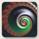 Diese Arbeit zeichnet sich durch ein komplexes, wirbelndes Fraktal mit einer Spiralstruktur aus, die sich unendlich nach innen ausdehnt. Die Primärfarben sind lebhaft rot und üppig grün, kontrastieren mit einem tiefen, dunklen Hintergrund. Entlang der Spirale wiederholen sich komplexe, kleinere Fraktal-Formen, die ein Gefühl von Tiefe und Bewegung schaffen. Die roten Fraktal-Elemente ähneln Bio Formen, fast wie blühende Blume oder geschwungene Blätter. Die grünen Töne wechseln allmählich zu silbrigen Weißen naher in die Mitte, wodurch ein leuchtender Effekt entsteht. Insgesamt ruft das Bild ein Gefühl unendlicher Komplexität und dynamischer Energie hervor.