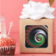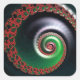 Diese Arbeit zeichnet sich durch ein komplexes, wirbelndes Fraktal mit einer Spiralstruktur aus, die sich unendlich nach innen ausdehnt. Die Primärfarben sind lebhaft rot und üppig grün, kontrastieren mit einem tiefen, dunklen Hintergrund. Entlang der Spirale wiederholen sich komplexe, kleinere Fraktal-Formen, die ein Gefühl von Tiefe und Bewegung schaffen. Die roten Fraktal-Elemente ähneln Bio Formen, fast wie blühende Blume oder geschwungene Blätter. Die grünen Töne wechseln allmählich zu silbrigen Weißen naher in die Mitte, wodurch ein leuchtender Effekt entsteht. Insgesamt ruft das Bild ein Gefühl unendlicher Komplexität und dynamischer Energie hervor.