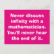 Sprich nie mit einem Mathematiker über Unendlichkeit. Du wirst nie das Ende hören.