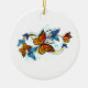Symbol infinity made of gold, decorated with realistic orange and blue on a white background. Butterfly morpho and Monarch. Design with butterflies.