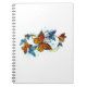 Symbol infinity made of gold, decorated with realistic orange and blue on a white background. Butterfly morpho and Monarch. Design with butterflies.