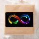 Symbol of infinity is artistically painted with fast moving, bright, luminous, rainbow colored comets with long flexible tails on black background. Rainbow infinity.