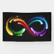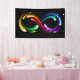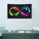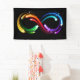 Symbol of infinity is artistically painted with fast moving, bright, luminous, rainbow colored comets with long flexible tails on black background. Rainbow infinity.