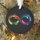 Symbol of infinity is artistically painted with fast moving, bright, luminous, rainbow colored comets with long flexible tails on black background. Rainbow infinity.
