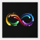 Symbol of infinity is artistically painted with fast moving, bright, luminous, rainbow colored comets with long flexible tails on black background. Rainbow infinity.