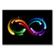 Symbol of infinity is artistically painted with fast moving, bright, luminous, rainbow colored comets with long flexible tails on black background. Rainbow infinity.