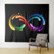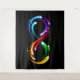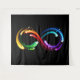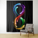 Symbol of infinity is artistically painted with fast moving, bright, luminous, rainbow colored comets with long flexible tails on black background. Rainbow infinity.