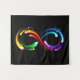 Symbol of infinity is artistically painted with fast moving, bright, luminous, rainbow colored comets with long flexible tails on black background. Rainbow infinity.