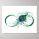 Das Symbol of infinity with hat Bright, Green, Artistic peacock feather, wir haben White Background. Tattoo Stil.