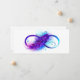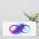 Infinity symbol with a beautiful feather painted in purple and blue bright colors on white background.