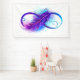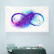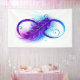 Infinity symbol with a beautiful feather painted in purple and blue bright colors on white background.