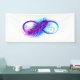 Infinity symbol with a beautiful feather painted in purple and blue bright colors on white background.