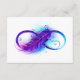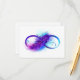 Infinity symbol with a beautiful feather painted in purple and blue bright colors on white background.