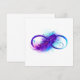 Infinity symbol with a beautiful feather painted in purple and blue bright colors on white background.