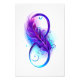 Infinity symbol with a beautiful feather painted in purple and blue bright colors on white background.
