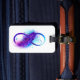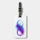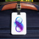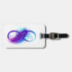Infinity symbol with a beautiful feather painted in purple and blue bright colors on white background.