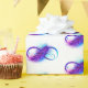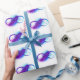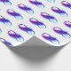 Infinity symbol with a beautiful feather painted in purple and blue bright colors on white background.