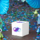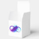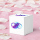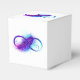 Infinity symbol with a beautiful feather painted in purple and blue bright colors on white background.