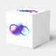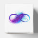 Infinity symbol with a beautiful feather painted in purple and blue bright colors on white background.