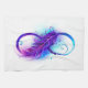 Infinity symbol with a beautiful feather painted in purple and blue bright colors on white background.