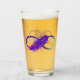 Infinity symbol with a beautiful feather painted in purple and blue bright colors on white background.