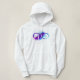 Infinity symbol with a beautiful feather painted in purple and blue bright colors on white background.