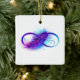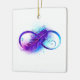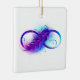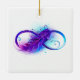 Infinity symbol with a beautiful feather painted in purple and blue bright colors on white background.