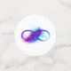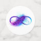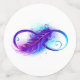 Infinity symbol with a beautiful feather painted in purple and blue bright colors on white background.