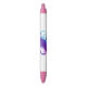 Infinity symbol with a beautiful feather painted in purple and blue bright colors on white background.