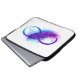 Infinity symbol with a beautiful feather painted in purple and blue bright colors on white background.