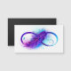 Infinity symbol with a beautiful feather painted in purple and blue bright colors on white background.