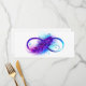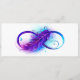 Infinity symbol with a beautiful feather painted in purple and blue bright colors on white background.