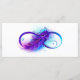Infinity symbol with a beautiful feather painted in purple and blue bright colors on white background.