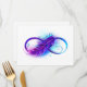 Infinity symbol with a beautiful feather painted in purple and blue bright colors on white background.