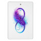 Infinity symbol with a beautiful feather painted in purple and blue bright colors on white background.