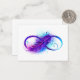Infinity symbol with a beautiful feather painted in purple and blue bright colors on white background.
