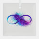 Infinity symbol with a beautiful feather painted in purple and blue bright colors on white background.