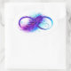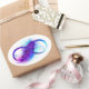 Infinity symbol with a beautiful feather painted in purple and blue bright colors on white background.