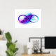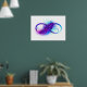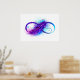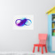 Infinity symbol with a beautiful feather painted in purple and blue bright colors on white background.
