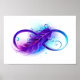Infinity symbol with a beautiful feather painted in purple and blue bright colors on white background.