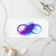 Infinity symbol with a beautiful feather painted in purple and blue bright colors on white background.