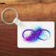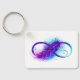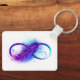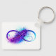 Infinity symbol with a beautiful feather painted in purple and blue bright colors on white background.
