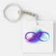 Infinity symbol with a beautiful feather painted in purple and blue bright colors on white background.