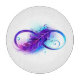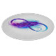 Infinity symbol with a beautiful feather painted in purple and blue bright colors on white background.