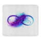 Infinity symbol with a beautiful feather painted in purple and blue bright colors on white background.